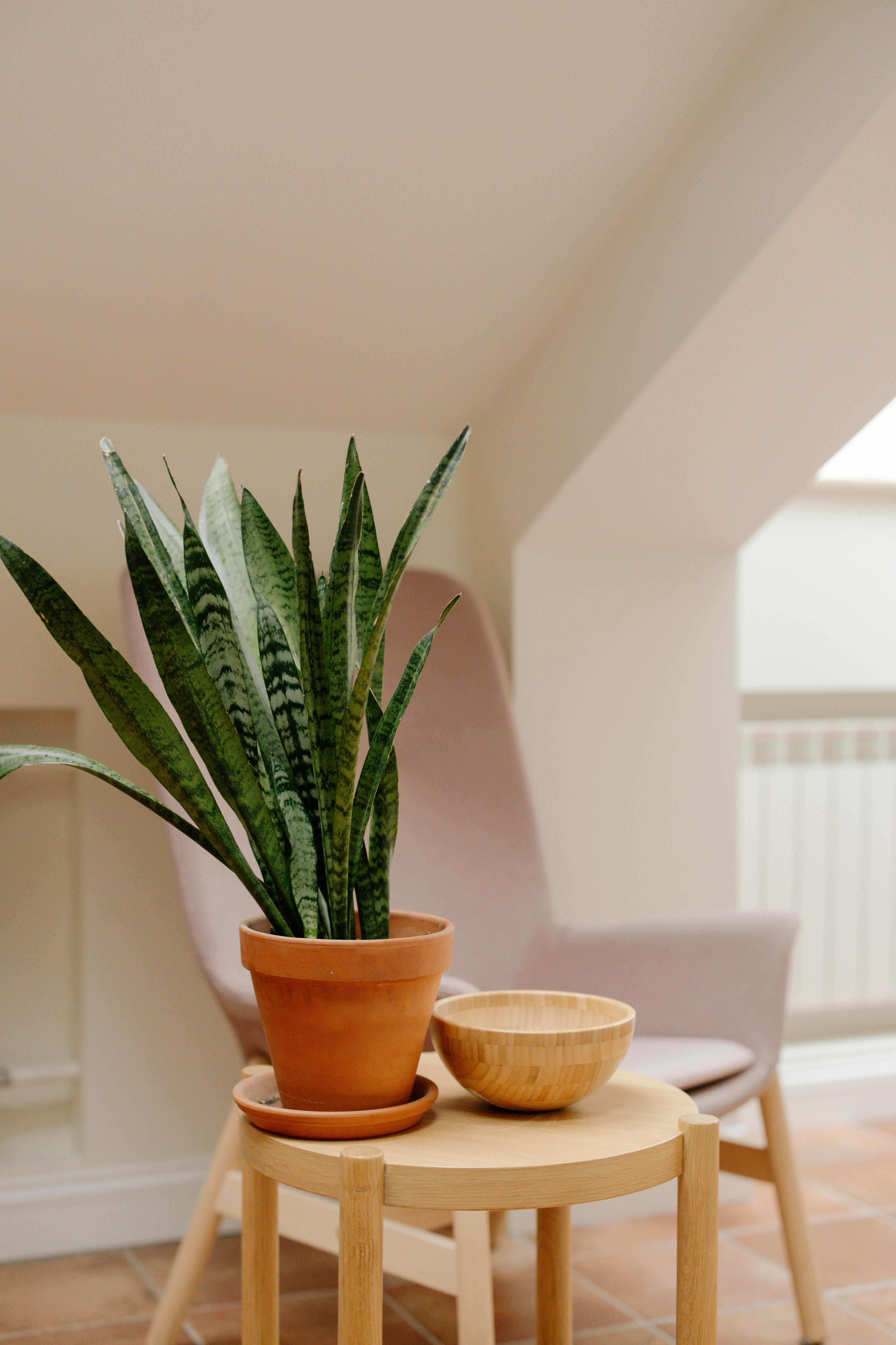 Sansevieria can adapt to a range of light conditions but will do best in bright, indirect light. Water sparingly once the compost has almost dried out, and ensure adequate drainage. Wipe the leaves regularly to maximise its air purifying qualities.